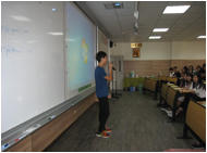 (3)成果收穫:相信經過新生茶會的介紹後,新生對於選課與系上一定都有了更多的認識。在活動中的遊戲及小組時間也都彼此認識、結交了許多新朋友。並在看完系隊、宿營的介紹後,必定也能使新生思考該如何選擇未來的課外活動,豐富自己大學四年的生活。(PH 吳孟芸 紀錄)